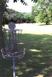 Hole # 6 is the longest hole on the course. A gradual uphill slope will fool you and drop your shots short. You are also usually facing the prevailing wind here. The 4th fairway lines the left and the road (US 221 - Brambleton Ave.) runs down the right side. The fairway is basically wide open, but the Pole Hole is placed between two tree trunks that run in line with the fairway, so you need a good curve second to get at the hole.