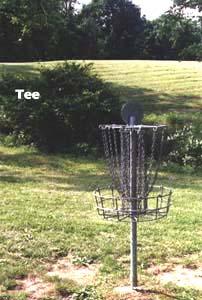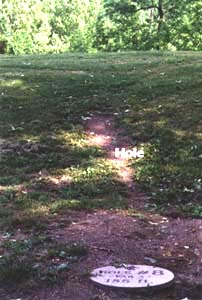 Hole #8 is a odd little hole. From the tee, you face a 18 ft hill in front of you. The Pole hole is located on the other side of the hill and about 30 feet below the crest of the hill. A large tree lies between the tee and the Pole Hole, with a ditch with dense brush below the tree. A swampy area runs out of the ditch and about 15 feet left of the Pole Hole. A good right to left will take you around the tree, but with the angle you need to throw to clear the hill, your disc will often catch the large limbs that protect the right side. If you thread the needle, the area of the Pole Hole is open and usually gives you a good second and a chance for a birdie.